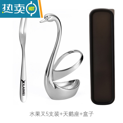 敬平304不锈钢水果叉水果签果插小叉子甜品叉月饼叉家用5支装 304不锈钢水果叉(5支装+天鹅座+黑盒)
