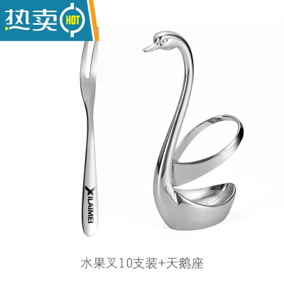 敬平304不锈钢水果叉水果签果插小叉子甜品叉月饼叉家用5支装 304不锈钢水果叉(10支装+天鹅座)