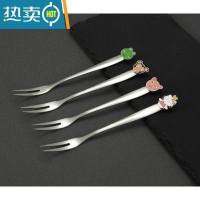敬平家用水果叉子套装不锈钢儿童卡通蛋糕叉月饼叉甜品叉水果签小叉子 黑色卡通水果叉2支(图案随机发) 长度13.