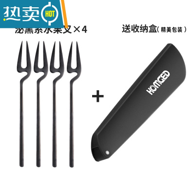敬平水果叉套装创意可爱304不锈钢小叉子家用月饼插果签水果蛋糕叉具 挂壁水果叉泌黑系4只装(送收纳盒)