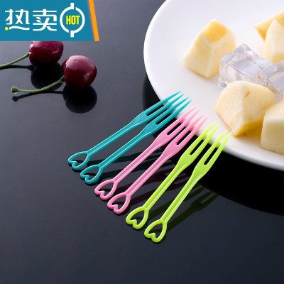 敬平水果叉塑料透明创意家用水果叉子点心蛋糕试吃水果签插 粉色简装500只(买5送1)