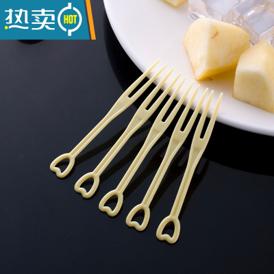 敬平水果叉塑料透明创意家用水果叉子点心蛋糕试吃水果签插 黄色简装500只(买5送1)