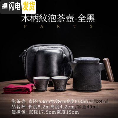 三维工匠 旅行茶具套装 便携快客杯功夫泡茶壶简易办公一壶二杯两杯 木柄山水纹泡茶壶(全黑)D3G