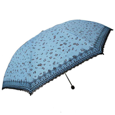 天堂3303E蕾丝豹纹黑胶三折晴雨伞蓝色