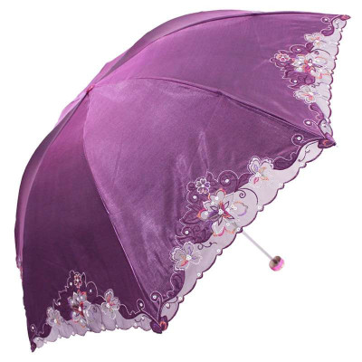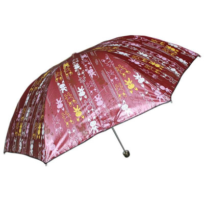 天堂3303E蕾丝豹纹黑胶三折晴雨伞红莲