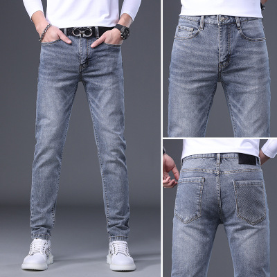 春夏季早春薄款简约灰色牛仔裤男修身小直筒男士休闲百搭长裤