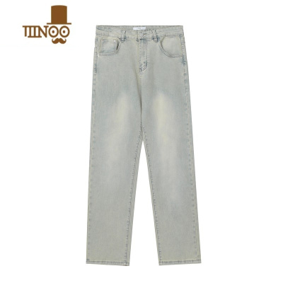YANXUBeautget美式复古水洗潮流牛仔裤男日系百搭显瘦宽松直筒牛仔长裤
