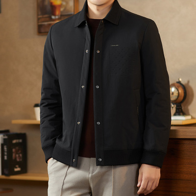 高密提花螺纹翻领羽绒服秋冬新款男士新国标90绒青年工装羽绒外套