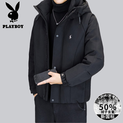 花花公子新款高品质白鸭绒羽绒服(带质检报告)冬季新款户外连帽男装外套