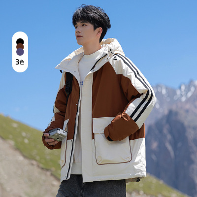 冬季羽绒服男90绒加厚宽松情侣款连帽白鸭绒青少年羽绒潮流男外套