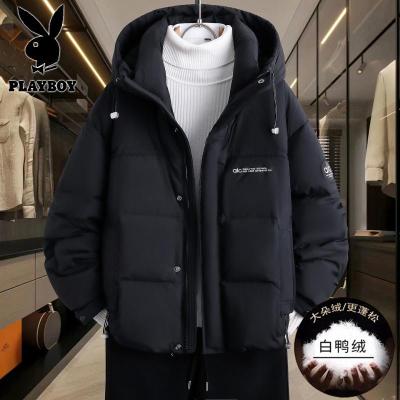 花花公子新款高品质带质检羽绒服男白鸭绒潮流拼接青少年冬季外套男