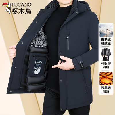 啄木鸟羽绒服男冬季石墨烯可拆卸内胆鹅绒外套中长款加厚防寒冬装
