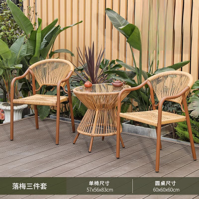 金菲罗格 阳台小桌椅三件套组合休闲藤椅一桌二椅户外庭院桌椅 2把落梅椅+观云茶几