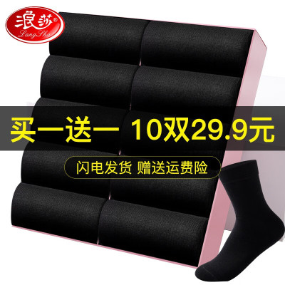 浪莎丝袜男士袜子夏季薄款款透气冰丝黑色商务休闲纯色中筒袜