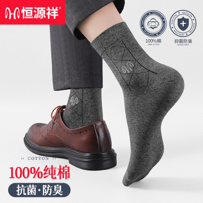 恒源祥男士中筒袜子纯色通勤休闲袜子男防臭透气纯棉商务袜男款
