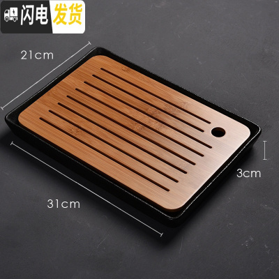 三维工匠陶瓷日式功夫茶具套装茶海托盘家用茶盘圆形蓄水实木干泡茶盘茶台 中长方禅风黑