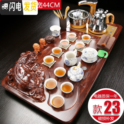 三维工匠茶具家用套装简约全自动四合一电茶炉功夫茶道现代泡茶茶盘大实木 17八仙蔚蓝茶具[茶盘规格96*46*7] 23件