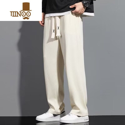 YANXU冰丝速干丨夏季薄款男士运动裤直筒宽松垂感皱长裤休闲裤男裤子