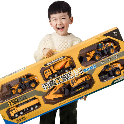 儿童玩具吊车推挖掘机水泥混凝土工程车合金小汽车模型套装951 6件套