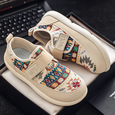 聚范回͌力͌男鞋2024新款男式布鞋一脚蹬老北京布鞋牛筋底休闲帆布鞋