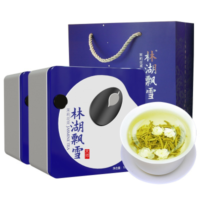 痴福 新茶飘雪茉莉花茶浓香型茶叶茉莉绿茶礼罐装250g 蓝锦绣茉莉飘雪2罐共250克