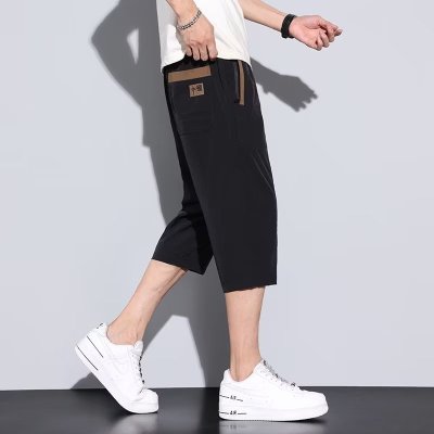 七分裤新款男装夏季冰丝裤男士休闭个性刺绣透气短裤