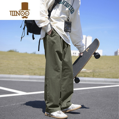 YANXU侧边拉链冲锋裤男夏季宽松美式复古高街直筒休闲运动裤子