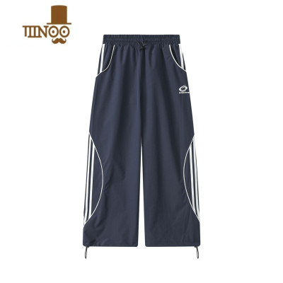 YANXU高街直筒休闲长裤男夏季宽松运动束脚冲锋裤条纹速干裤子
