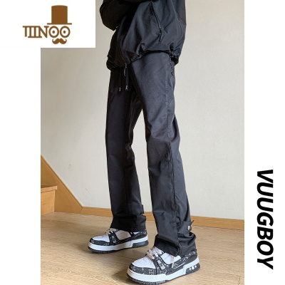 YANXU黑色微喇尼龙冲锋裤男款工装美式高街vibe潮牌休闲机能裤子
