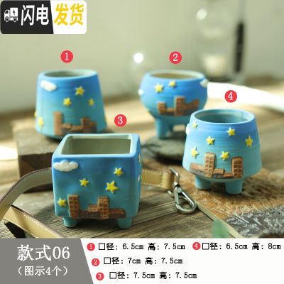 三维工匠麦饭石多肉花盆陶瓷手绘粗陶复古爆裂创意大老桩盆栽室内 花色星空4个 中等花盆容器