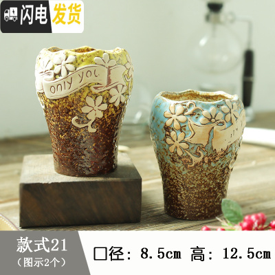 三维工匠麦饭石多肉花盆陶瓷手绘粗陶复古爆裂创意大老桩盆栽室内 褐色2个 中等花盆容器