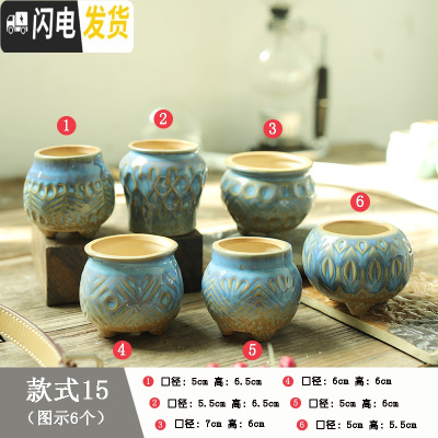 三维工匠麦饭石多肉花盆陶瓷手绘粗陶复古爆裂创意大老桩盆栽室内 透明海洋之心6个 中等花盆容器