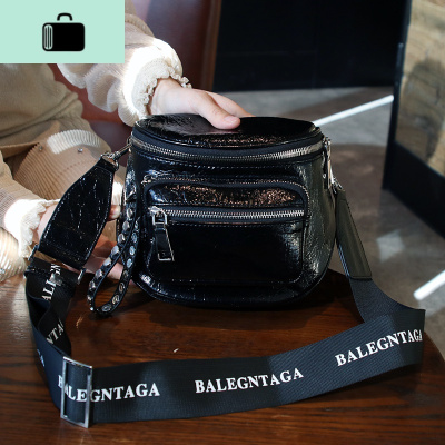 包包女2020新款爆裂纹单肩包韩版时尚亮面胸包宽带斜挎铆钉马鞍包NEW LAKE女斜挎包