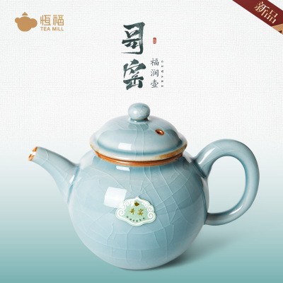 恒福(TEA MiLL)哥窑福润壶(天蓝)陶瓷单壶功夫茶具茶壶 冰裂釉
