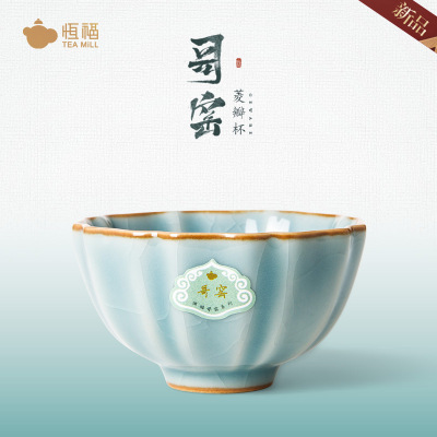 恒福 (TEA MiLL)哥窑菱瓣杯(天蓝)功夫茶具茶杯杯子水杯 陶瓷 冰裂釉