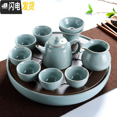 三维工匠中式简约哥窑开片家用功夫茶具小茶盘套装陶瓷泡茶器茶杯茶壶茶道 30cm哥窑-哥窑辰影9头