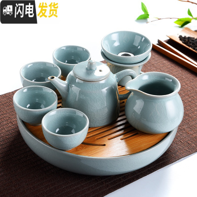 三维工匠中式简约哥窑开片家用功夫茶具小茶盘套装陶瓷泡茶器茶杯茶壶茶道 日月哥窑25cm-哥窑侧把壶7头