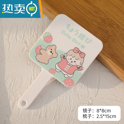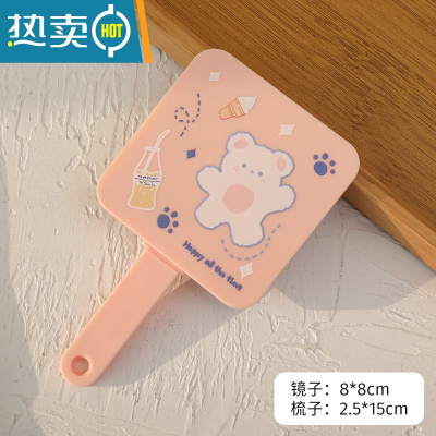 敬平少女心手持小号化妆镜学生宿舍便携随身携带小镜子梳子二合一套装 冰淇凌熊便携式用镜