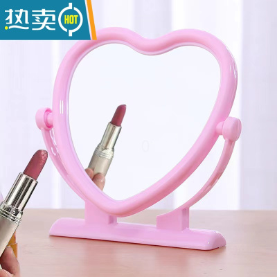 敬平[便携化妆镜台式大镜面梳妆镜折叠桌面公主镜长方形网红镜子梳妆便携式用镜 2010(心型)送梳子一个
