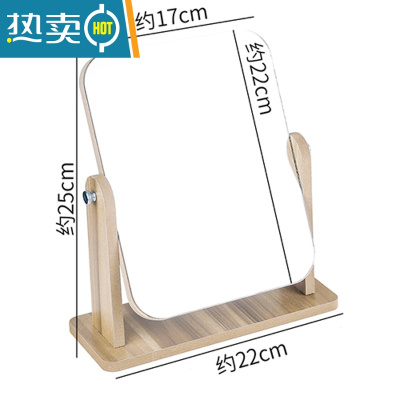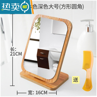 敬平大号木质台式化妆镜女梳妆镜学生桌面镜子宿舍少女便携折叠可立小 原木深色大号 [方形圆角]前收藏加购送梳子、便携式用镜
