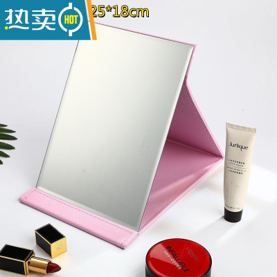 敬平折叠化妆镜桌面镜子家用大号学生宿舍小镜子女随身镜便携梳妆镜 特大号加厚款粉色送梳子 升级全面屏便携式用镜