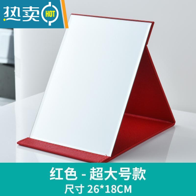 敬平折叠化妆镜桌面镜子家用大号学生宿舍小镜子女随身镜便携梳妆镜 特大号加厚款红色送梳子 升级全面屏便携式用镜
