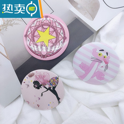 敬平网红补妆小镜子女迷你随身化妆镜手持可爱便携宿舍学生单面镜便携式用镜 粉色系(3个装)[送小梳子一把]