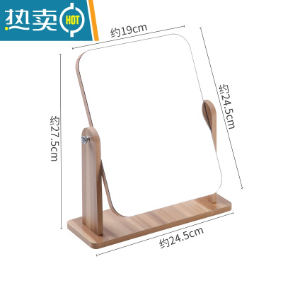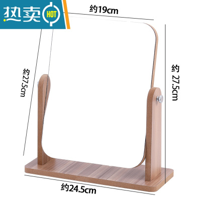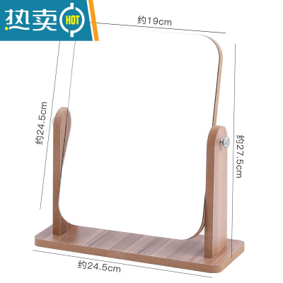 敬平台式化妆镜双面镜子ins风网红少女心桌面家用可立宿舍学生梳妆镜便携式用镜 木纹加大号-可旋转-随机送梳子 单面高清成