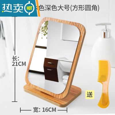 敬平木质台式化妆镜子女可立折叠单面梳妆镜学生便携宿舍桌面镜大号小 新款棕色竖款 加2大号[前送梳子]便携式用镜