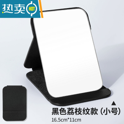 敬平折叠镜子化妆镜台式桌面可立家用小型便携办公室学生宿舍梳妆镜男 黑色(小号)16.5cm*11cm[送梳子]便携式用镜