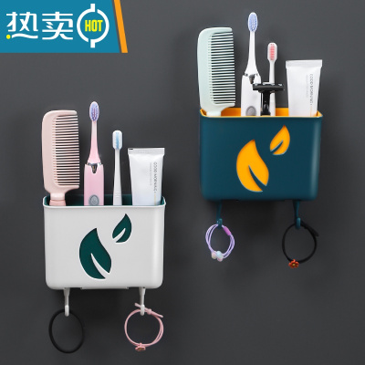 敬平卫生间置物架免打孔壁挂式牙刷牙膏浴室家用厕所墙上梳子收纳器 单格款2个装(单格蓝黄+单格白绿)浴室置物架