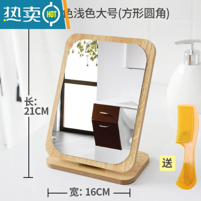 敬平镜子便携化妆镜折叠随身镜宿舍学生小镜子台式桌面可立梳妆镜少女 [木镜]方形浅色大号 (前收藏加购送梳子)便携式用镜