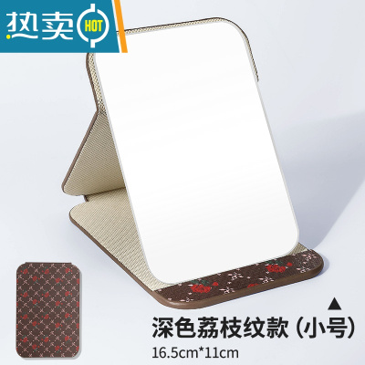 敬平折叠镜子化妆镜台式桌面可立家用小型便携办公室学生宿舍梳妆镜男 深咖(小号)16.5cm*11cm)[送梳子便携式用镜