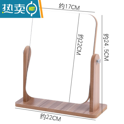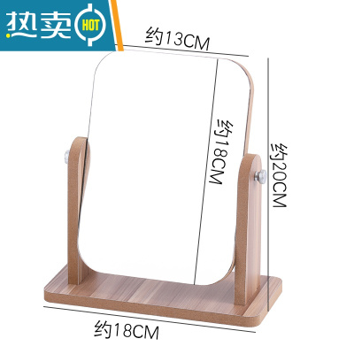 敬平大号木质台式化妆镜女梳妆镜学生桌面镜子宿舍少女便携折叠可立小 深色加厚特大号[方形圆角]前收藏加购送梳子、便携式用镜